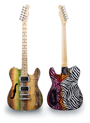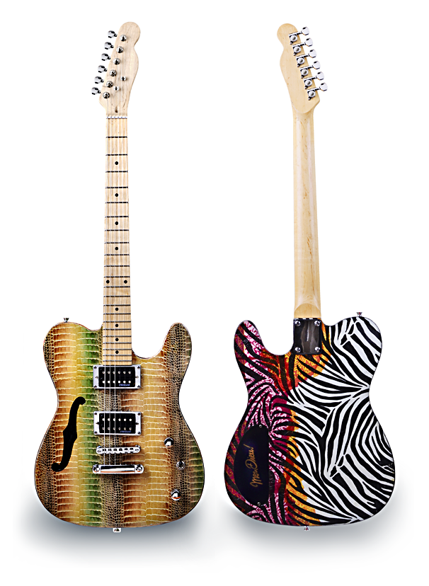 Die schönsten Vorbilder schenkt uns die Natur: Hier eine Telecaster-Interpretation für Terraristiker und Daktari-Fans. Wer gern mehr über unsere abenteuerlichen Gitarren erfahren will. sollte die INFO-Seite am Ende dieser Rubrik lesen!