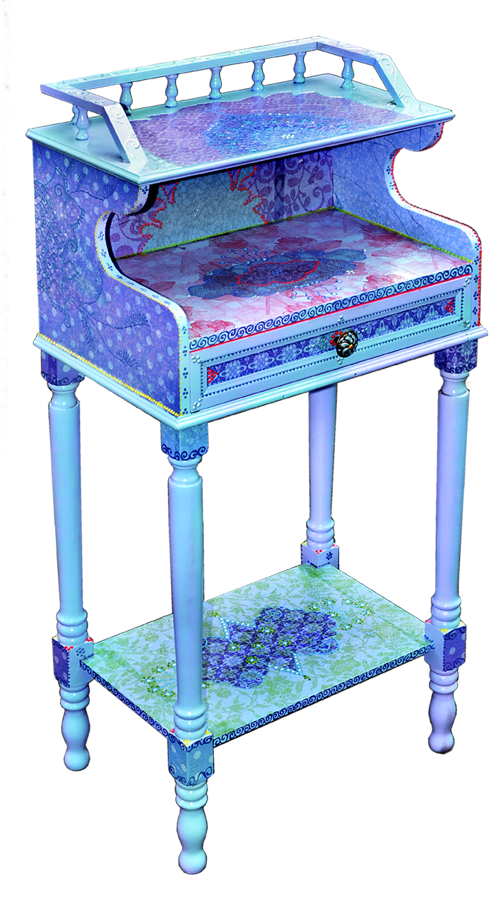 Zierliches Kommödchen in brisefrischem Pastellmix. Ideal für's wohlsortierte Badezimmer - als Présentoir hübscher Flacons, Frisierutensilien und Handtüchern.