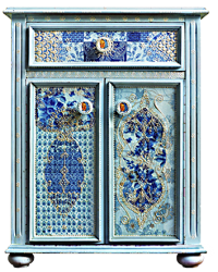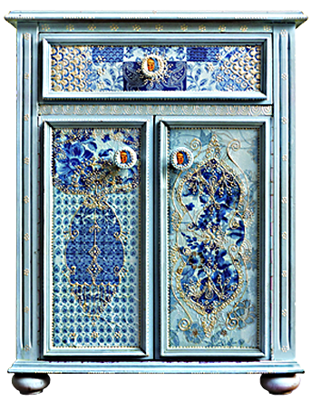 Nostalgisches Schränckchen im Landhaus-Stil mit Rotbäckchen-Applikationen auf den Griffknöpfen. Versand 15,00 Euro