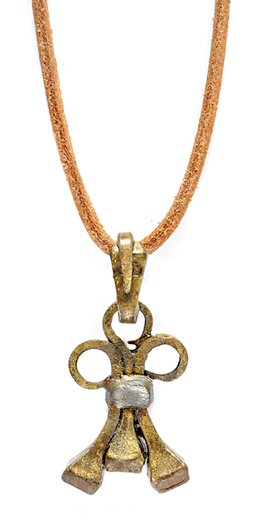 Nicht nur, aber gerade für Reitersleute oder Amazonen: Kleiner, aus Hufnägeln handgefertigter Glücksbringer. Als Symbol für die Heilige Dreifaltigkeit ist dieser Anhänger très magique und ein Schutz auf allen Wegen.