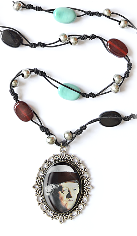 Hommage an die Grosse alte Dame des Krimi-Genres: Schrulliger Anhänger mit dem Konterfei von Margret Rutherford, der unvergessenen Kriminalfilm - Heroine.